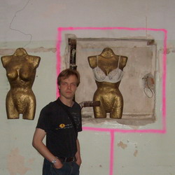 - PNK-group - прядильно-ниточный комбинат (смеётся). На самом деле, это расшифровывается как Полигон Независимого Кино, но это не имеет уже никакого значения. Группа существует с 2002 года. Её основной состав – Давид Зарипов, Константин Пальянов и я. Но помимо них на самом деле в группе участвует много людей. Например, Давид и Костя сейчас живут и работают в Москве, поэтому видеоинсталляцию я делала с Антоном Кармановым. Так вот. Что ещё рассказать?! Искусством мы занимаемся, творчеством, потому что мы творческие люди.